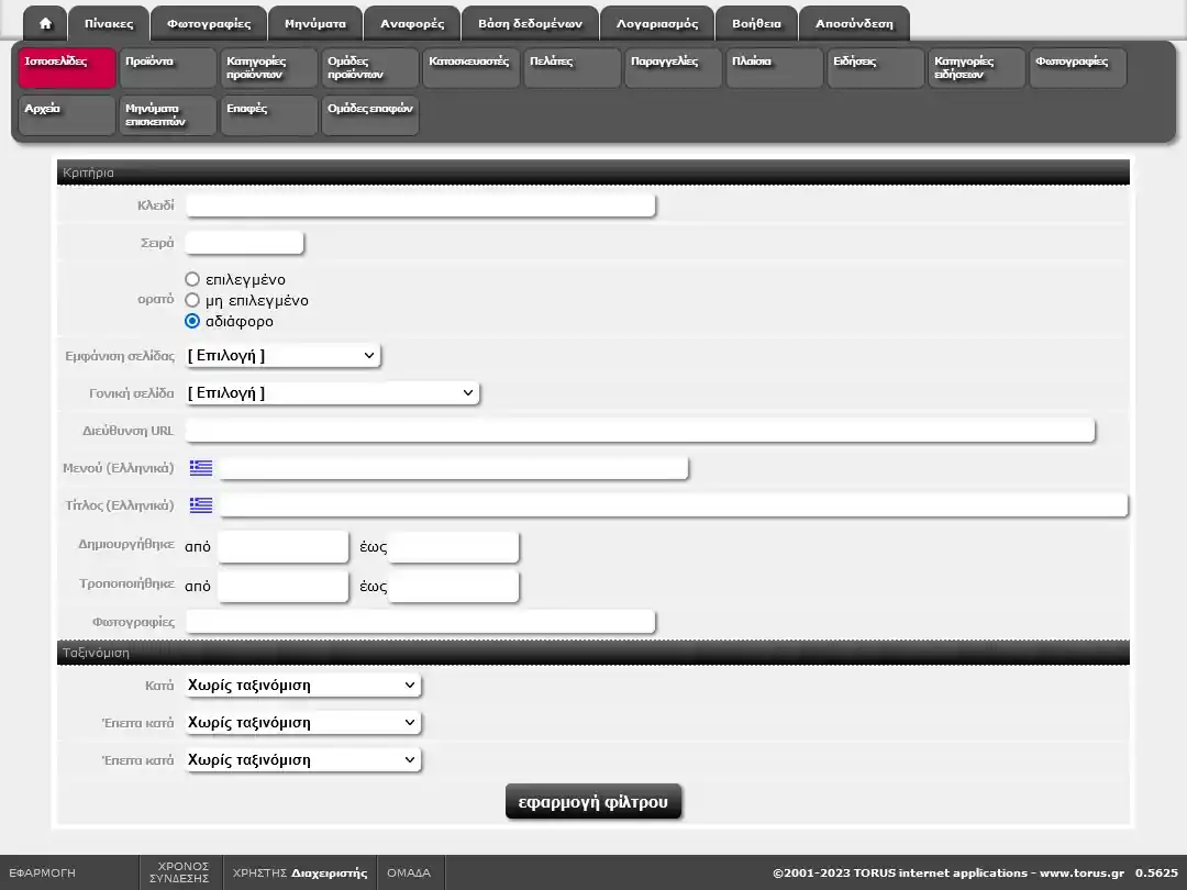 Θα οδηγηθείτε στη φόρμα αναζήτησης, όπου μπορείτε να συμπληρώσετε το στοιχείο ή τα στοιχεία / κριτήρια αναζήτησης των εγγραφών που επιθυμείτε και στη συνέχεια, κάντε κλικ στο [Εφαρμογή φίλτρου] στο κάτω μέρος της φόρμας αναζήτησης.